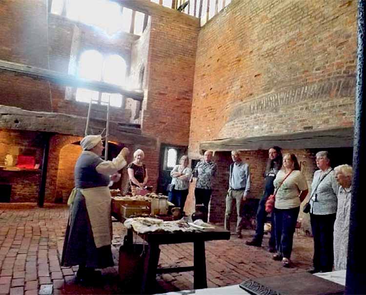 Society members in the kitchen at Gainsborough Old Hall: the 'gallery' in front of the window allowed the head cook to supervise the 'skivvies'.